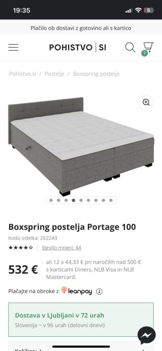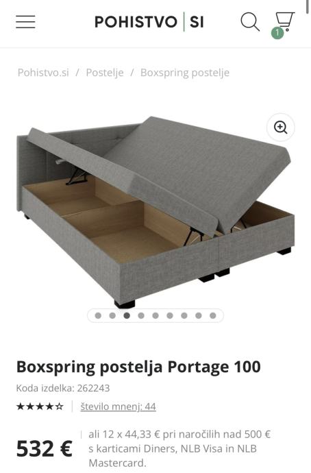 Prodam pol leta star Boxspring posteljo, 160/200. Postelja ni poškodovana, menjam jo zaradi mere ker je prevelika za mojo spalnico. Je kupljena na Pohistvo.si, enaka kot na sliki. Ima moznost shranjevanja. Prevzem v Celju.