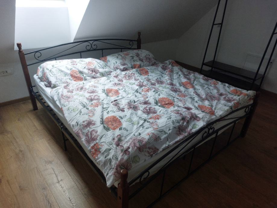 Posteljni okvir črna kovina in trdna hrastovina 180x200 cm, v originalni embalaži, novo, cena 150 eur.