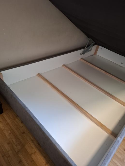 Zaradi dokončne selitve prodam rabljeno sivo francosko posteljo s prostorom za shrambo pod ležiščem. Je nekaj let stara in bila občasno rabljena (samo med vikendi), tako da je zelo dobro ohranjena.