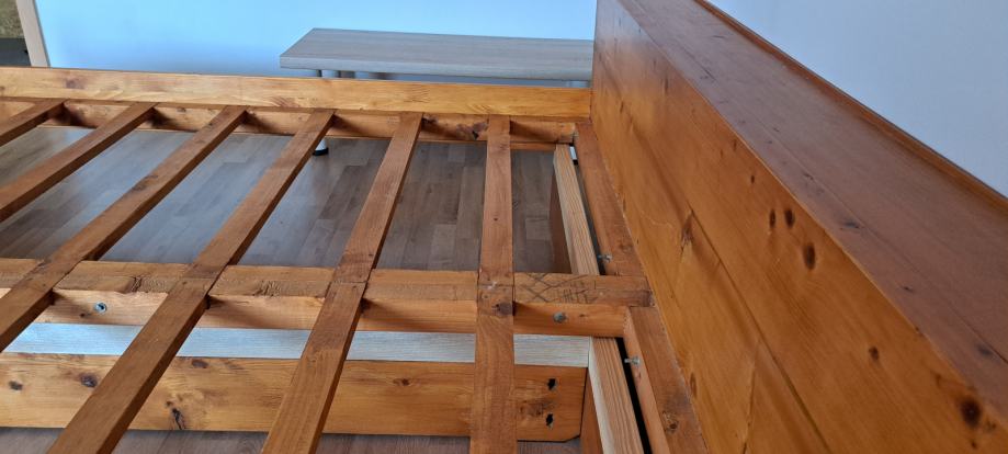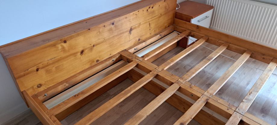 PODARIMO V DOMAČI DELAVNICI NAREJENO ZAKONSKO POSTELJO IZ MASIVNEGA LESA, DIMENZIJ 180x190 cm.