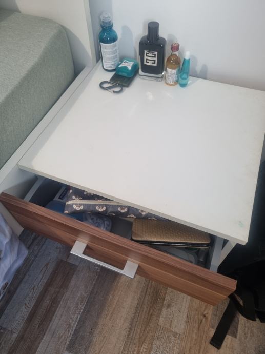 Velikost nočne omarice: 45,5 x 41 x 35, višina predala 14,5, višina spodnjega prostora 16,5.