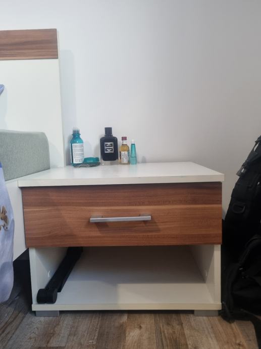 Prodajam zakonsko posteljo z dvema nočnima omaricama.