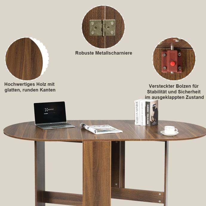 prostorna in dovolj velika za 4 do 7 oseb. S prilagodljivo zložljivo zasnovo lahko jedilno mizo po potrebi zložite do polovice ali popolnoma. Jedilna miza prihrani prostor in se lahko uporablja kot prostor za shranjevanje, ko je ne želite uporabljati.