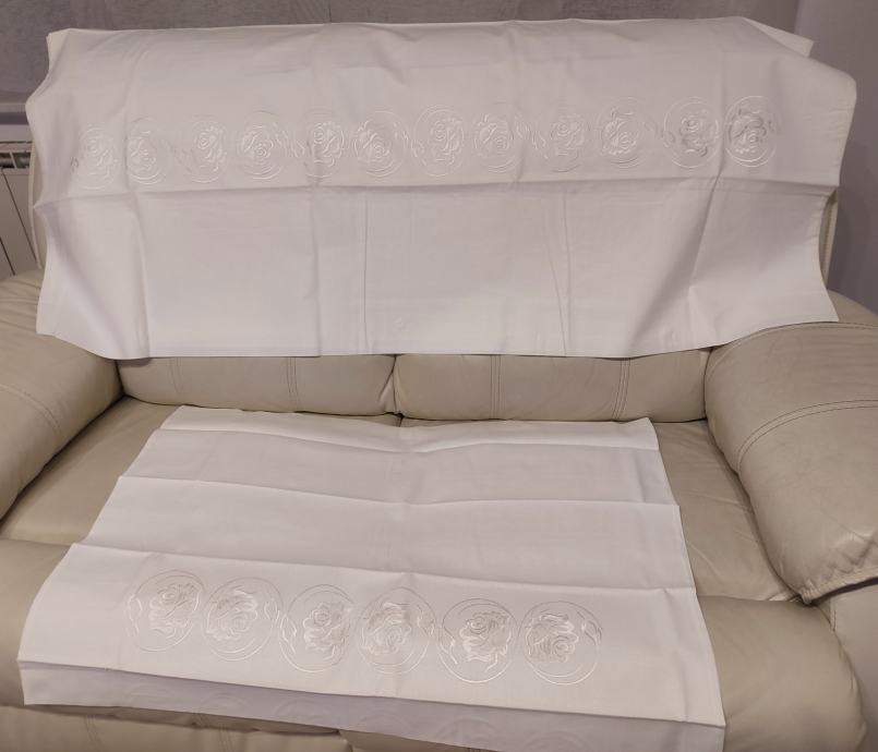 Novo posteljnino za enojno posteljo v bež barv z štikanimi rožami. Komplet je še iz predilnice in tkalnice Tržič, ki je imelo zelo kvalitetne izdelke. Komplet vsebuje prevleko za odejo 135 cm x 190 cm in prevleko za blazino 60 cm x 80 cm. Material 100 % bombaž.