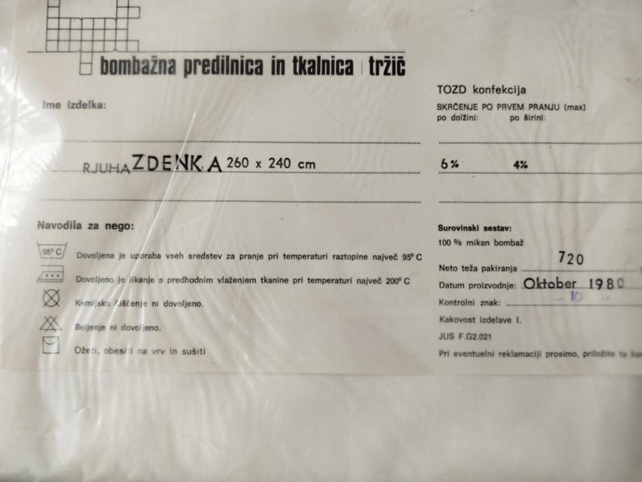 proizvajalec : bombažna predilnica in tkalnica Tržič
