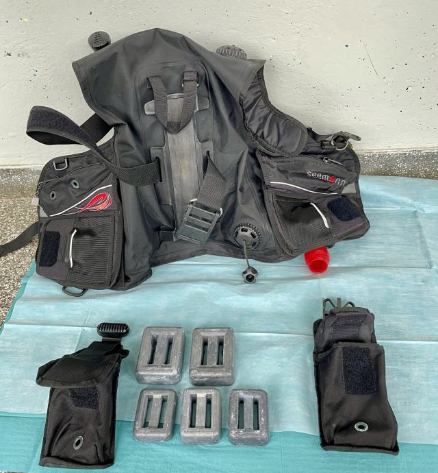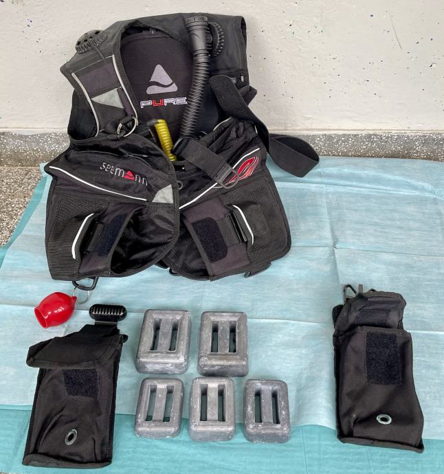 Prodam res lepo ohranjen kompenzator plovnosti Seemann, velikost S, z žepki za uteži, + uteži 5,5kg.