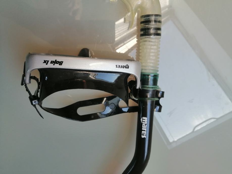 Potapljaška maska Mares Baja LX s dihalko, iz silikona, rabljena a popolnoma izravna.
