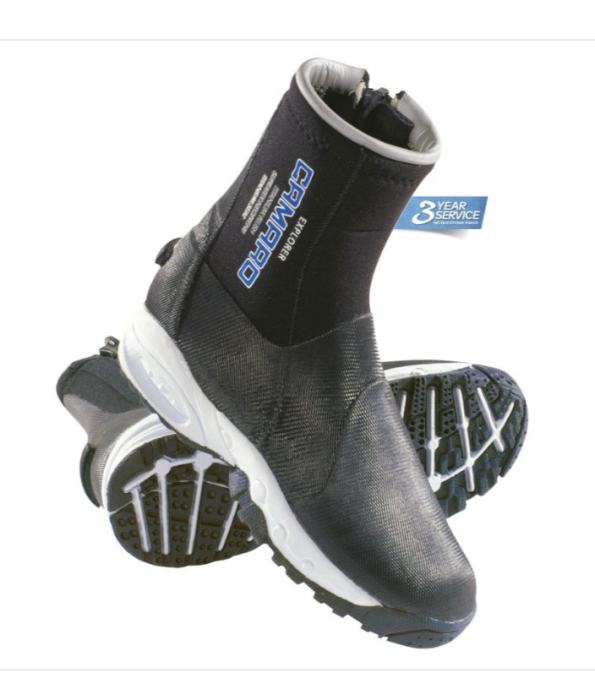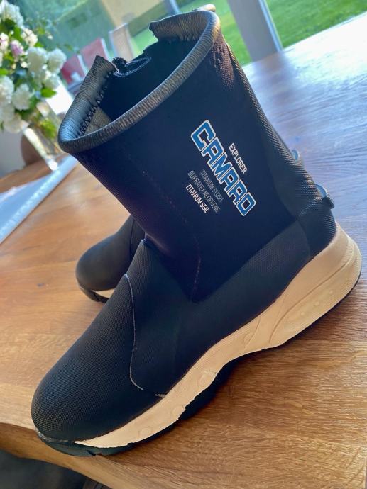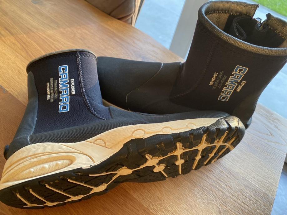 Potapljaški neopren čevlji Camaro. V zelo dobrem stanju, skoraj nič rabljeni. Material: 6,5 neopren s podlogo iz titaniuma/ pliša. Velikost čevlja 42. Prodam