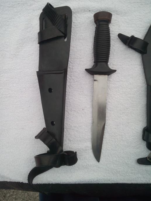 Nož ima pripadajočo nožnico, in pas za pripetje.