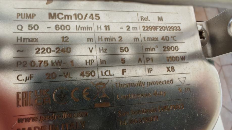 Črpalka ima sekač ki lahko zmelje manjše dele.