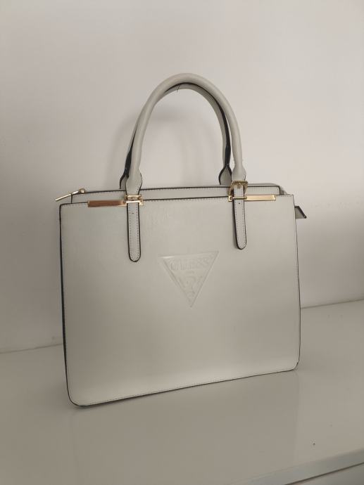 Prodajam belo Guess torbico srednje velikosti. Torbica je elegantna in primerna za vsakodnevno uporabo ali posebne priložnosti. Dobro ohranjena, brez večjih znakov obrabe.