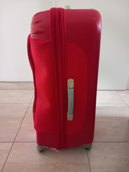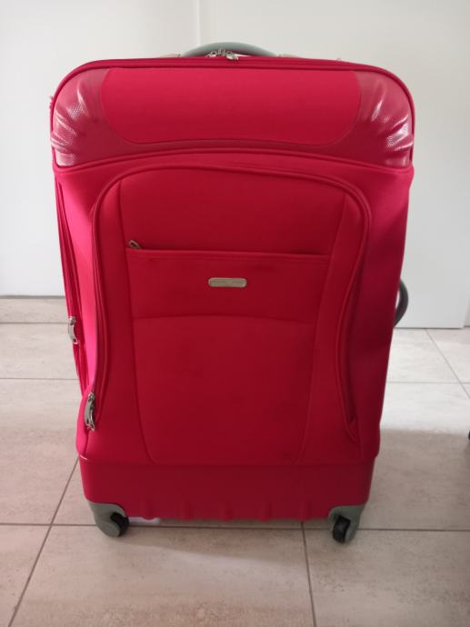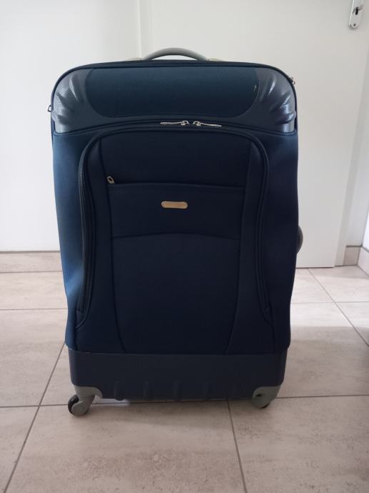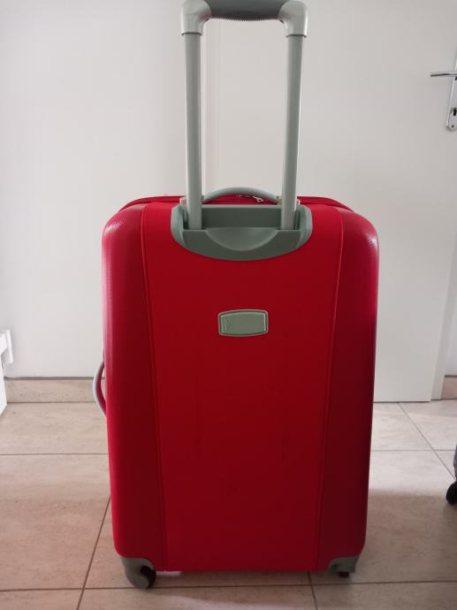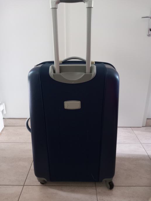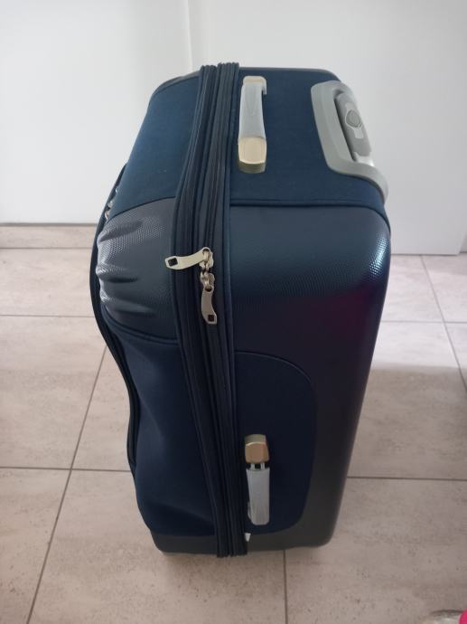 Višina 70cm, širina 49cm, globina najmanj 30 cm saj ima dve zadrge in se lahko poveča. Zelo lahek teža enega kovčka je 4 kg, s štirimi vrtljivimi kolesci. Sta kot nova saj sta bila uporabljena za eno potovanje. Cena za kos.
