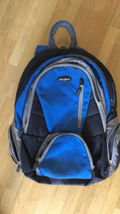 Ima več notranjih razdelkov, žepov in predalov. Je moder, siv in črn.