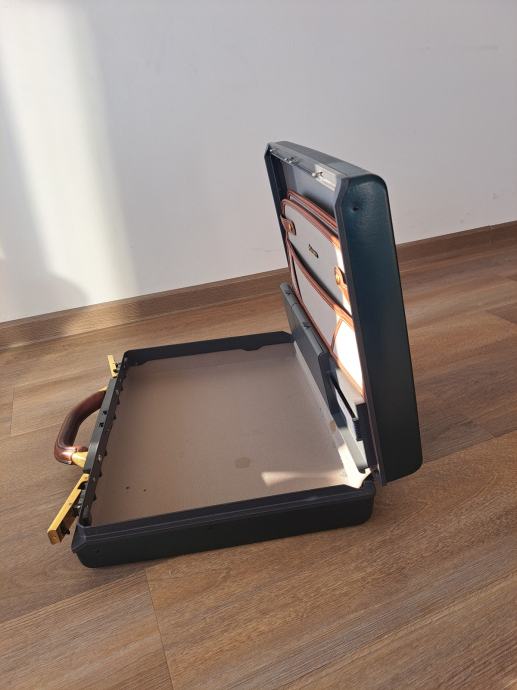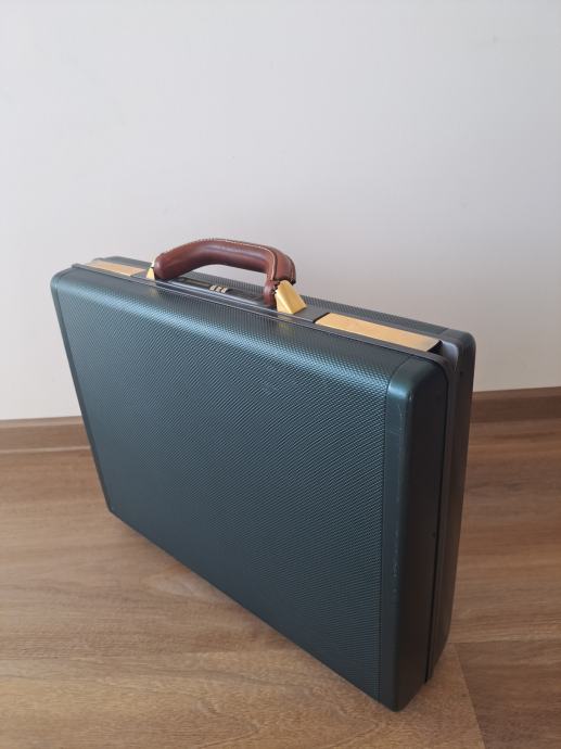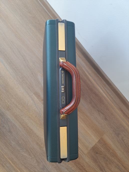 Prodam poslovni kovček Samsonite, temno zelen z rjavim usnjenim ročajem, velikost 45x36x10 cm. Kovček je v odličnem stanju, dobro ohranjen, malo rabljen.