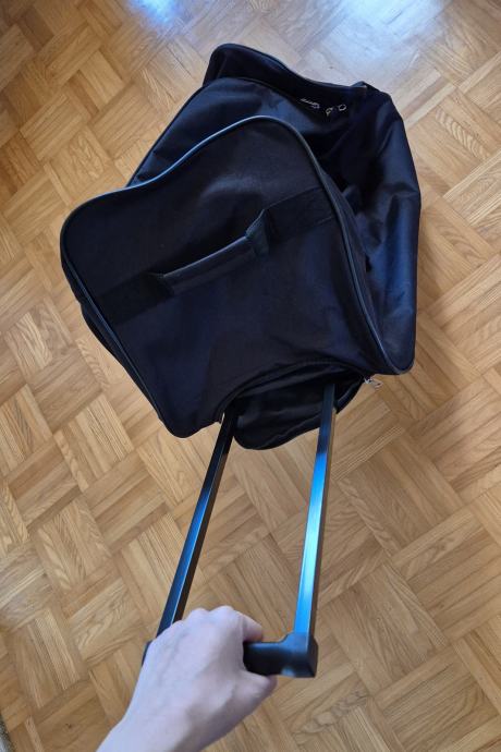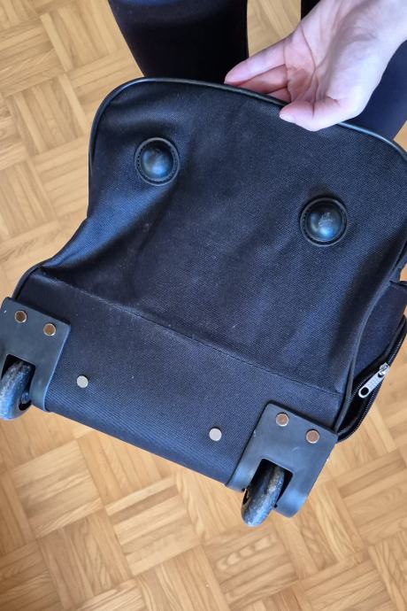 Kupljeno v Primarku uporabljeno samo za selitev iz stanovanja v stanovanje. Vse zadrge delujejo normalno. Koleščka sta samo malo umazana.