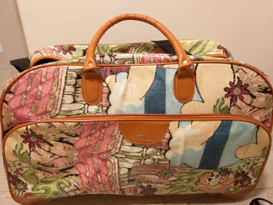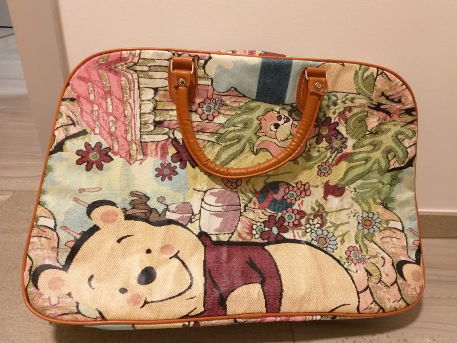 Atraktivna otroška potovalka privlačnih barv z motivi medvedka in veverice, z dimenzijami: