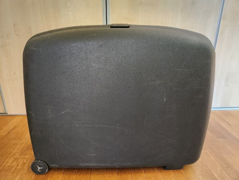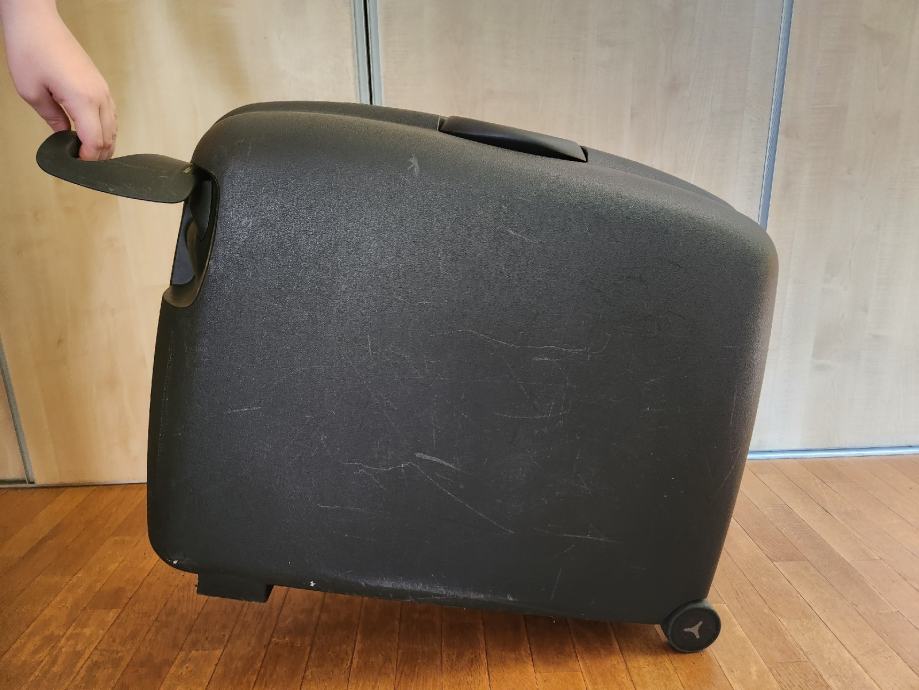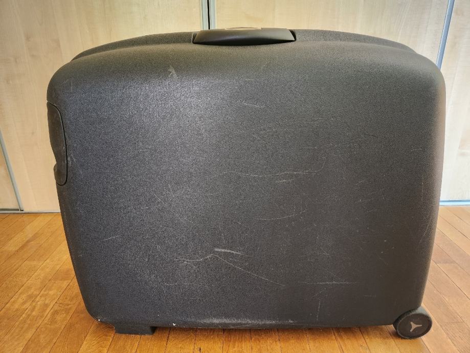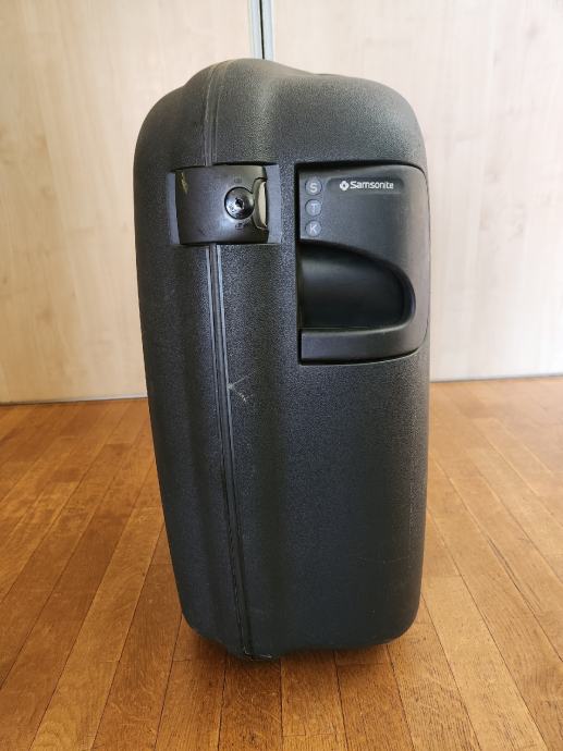 Prodam trdi kovček Samsonite večjih dimenzij (d - 72, v - 62, š - 30). Kovček ima dve kolesi, prenosni ročaj na vrhu, stranski dvižni ročaj za vleko in v zaponko integrirano trimestno kombinacijsko ključavnico. V notranjosti sta dva zategovalna pasova, stranski odlagalni žepi iz blaga in dodatna vreča za obleke z ogrodjem in obešalnikom. Kovček je izjemno dobro ohranjen in zelo malo rabljen, kupljen pa pred približno 20 leti.
