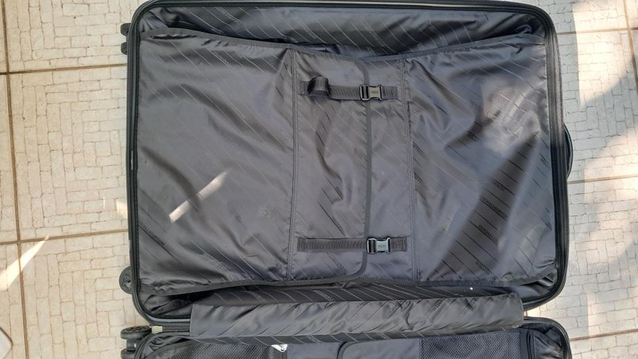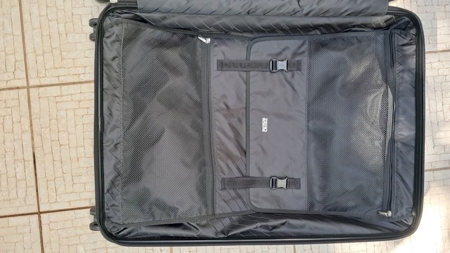 Kakovosten kovček priznane znamke. Dimenzije: 22 × 50 × 70 cm. Elegantna črna sijaj barva.