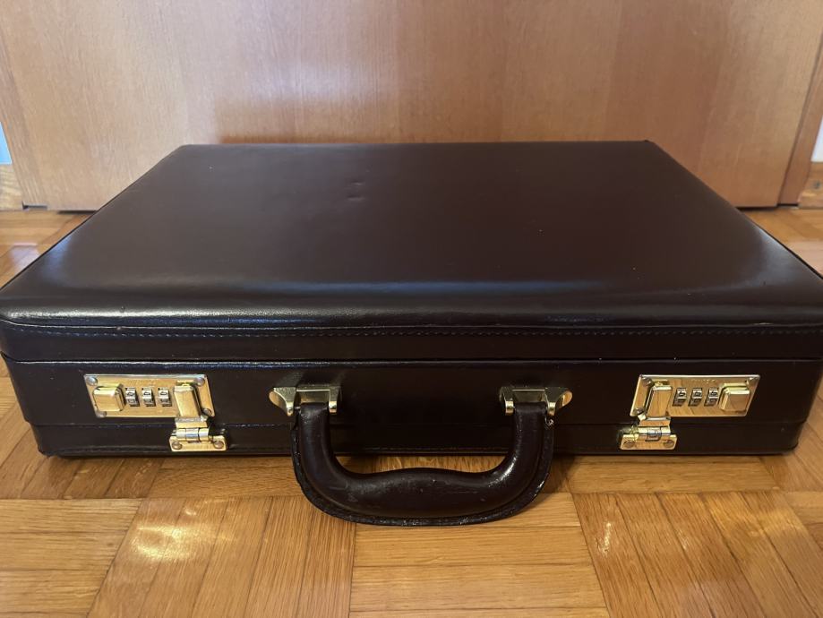 Rjav usnjen poslovni kovček v rjavi barvi, skoraj nov