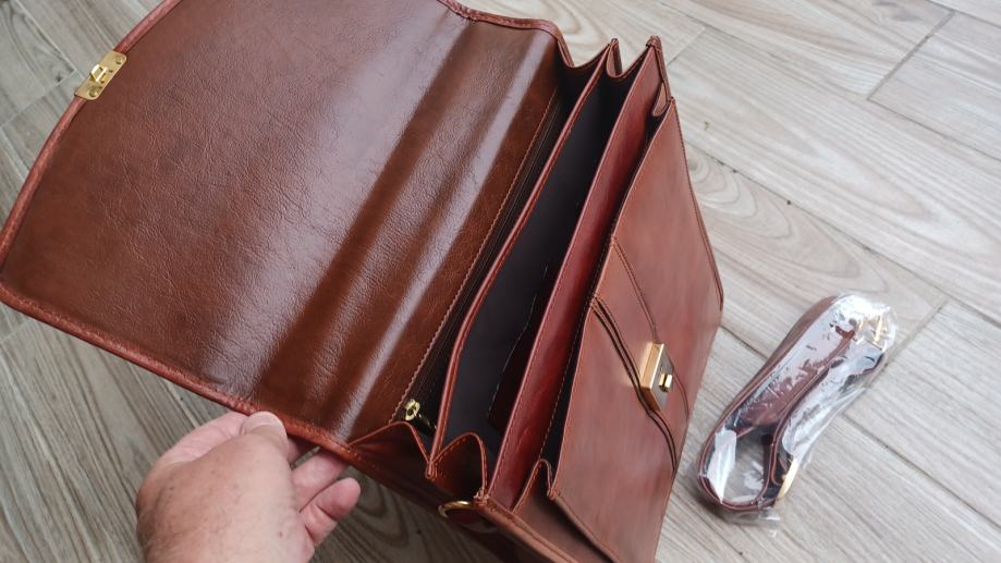 Na prodaj nova usnjena torba. Mere cca. 30x36cm,debelina 12cm, znotraj 3 predali + 1 z zadrgo, +1 zunaj. Tudi pošljem po pošti.