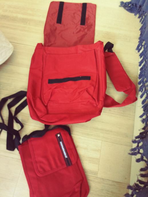 Rdeča torba za dokumente in manjša naramna torbica, vsaka z daljšim pasom za čez ramo - 16 eur,