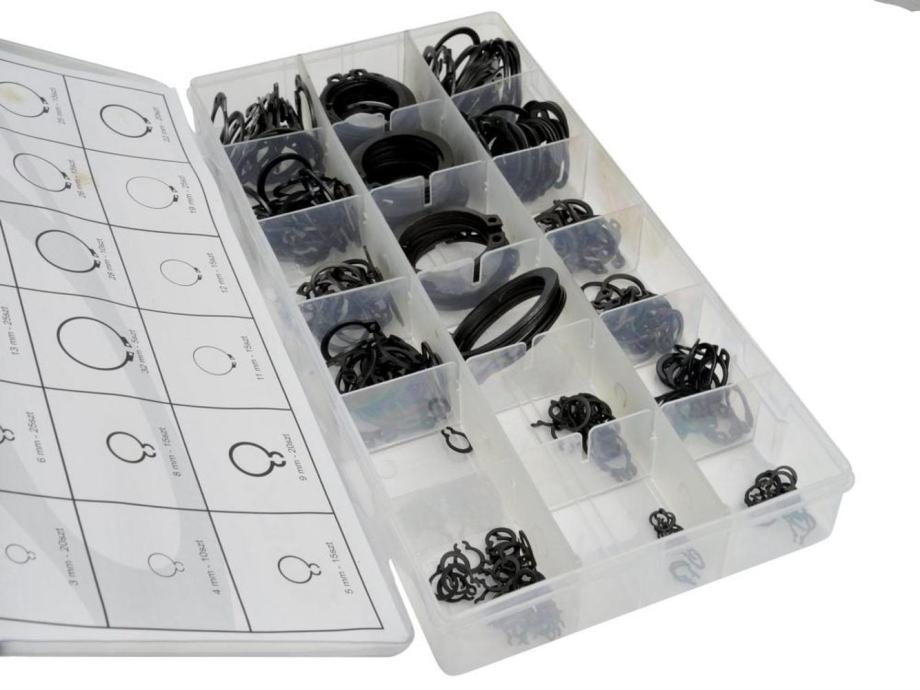 Set 300 zunanjih obročev Seeger v velikostih 3 – 32 mm.