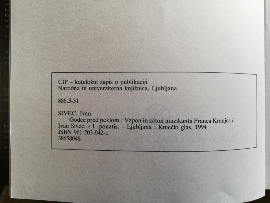 GODEC PRED PEKLOM, avtor VAN SIVEC. Izdala založba KMEČKI GLAS, leta 1994.