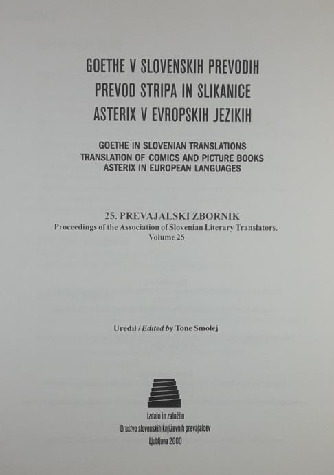 378 strani, mehka vezava, 23,5 cm, Društvo slovenskih književnih prevajalcev, 2000, lepo ohranjena
