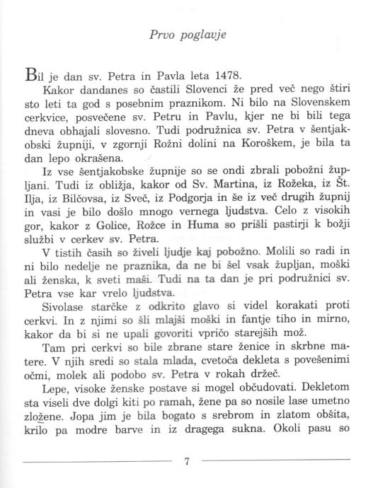 Zgodba se odvija v 15. stoletju, v času turških vpadov, na Koroškem, v vaseh Svetne (Svatne), Sveče, Št. Jakob v šentjakobski župniji Rožu. Župan Serajnik na dan sv. Petra in Pavla (29. junij) leta 1478 naznani, da se bližajo hudi časi zaradi slabe letine, kuge in Turkov. Rožani za obrambo pred sovražnikom obnovijo Gradišče.