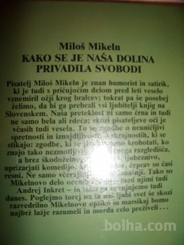 Knjiga Kako se je naša dolina privadila svobodi je zbirka pripovedi, ki na slikovit in humoren način opisuje čas po 2. svetovni vojni. Pisatelj je bil znan humorist in satirik. Naša preteklost ni samo črna in tudi ne samo bela ali rdeča; skozi pisateljeve oči je včasih tudi vesela. To so zgodbe o neuničljivi spretnosti in iznajdljivosti, o skrajnostih, ki se stikajo; zgodbe, ki se jim moramo krohotati, ko znajo tako nezmotljivo, z vzvišenega gledišča, a brez škodoželjnega posmeha, ljubeznivo, uprizarjati komedijo, ki ji ni konca, čeprav so časi resni… tako so Mikelnovo delo ocenili kritiki… Poglejmo torej na naš ljubi svet še skozi razvedrilno Mikelnovo optiko in marsikaj bomo najbrž lažje razumeli in morda celo preživeli…