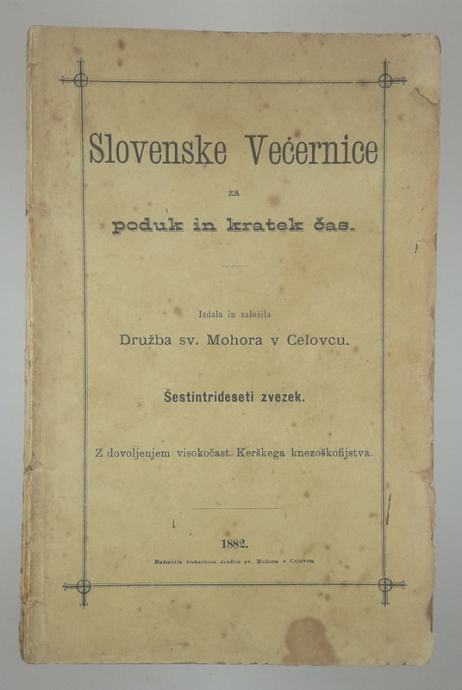 112 strani, mehka vezava, 20 cm, Družba sv. Mohorja, 1882, lepo ohranjena.