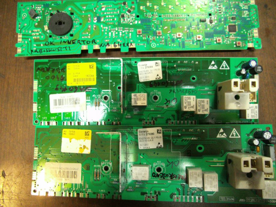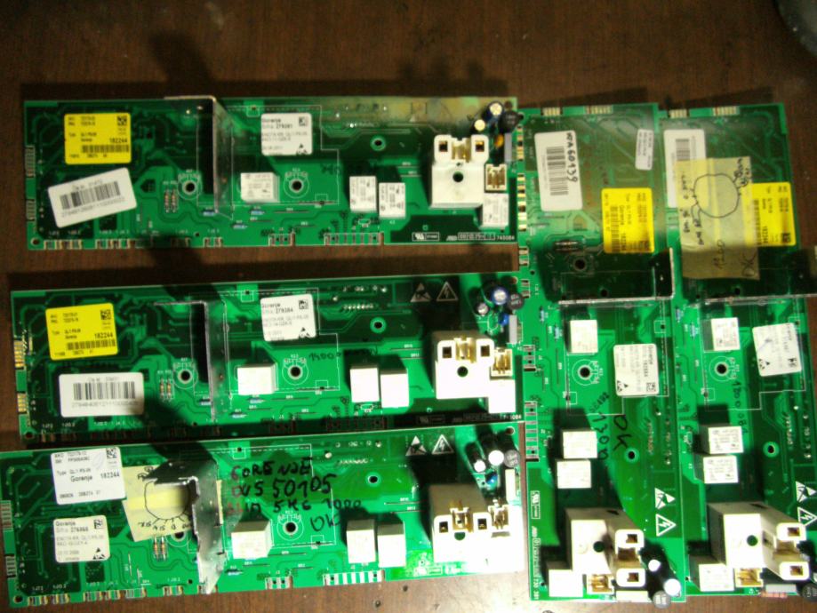 Ispravna elektronika za pralne stroje gorenje, serije, modele in izpeljanke - variante, kot jih vidite na slikah. Cena 20 - 40 eur kos. Znotraj serije strojev, ki so na pogled enaki, imajo pa nekoliko drugačne lastnosti, je mogoče v nekaterih primerih uporabiti tudi elektroniko, ki je na videz enaka, a z drugačno šifro. Tudi menjam ispravno za neispravno, možnost za popravilo elektronike. Prodam tudi elektroniko in druge dele za novejše in starejše stroje gorenje, in drugih znamk, ki niso na slikah. Tel. 041 549 478