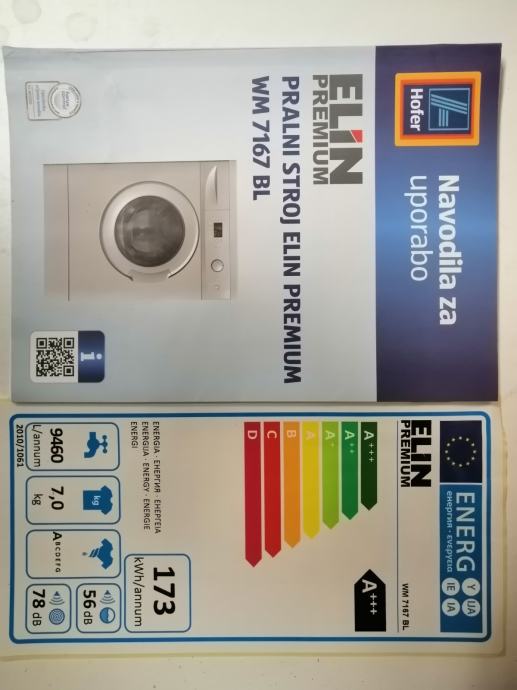 Pralni stroj Elin Premium WM 7167 BL (Hofer), star pet let, odlično ohranjen, izgleda kot nov.