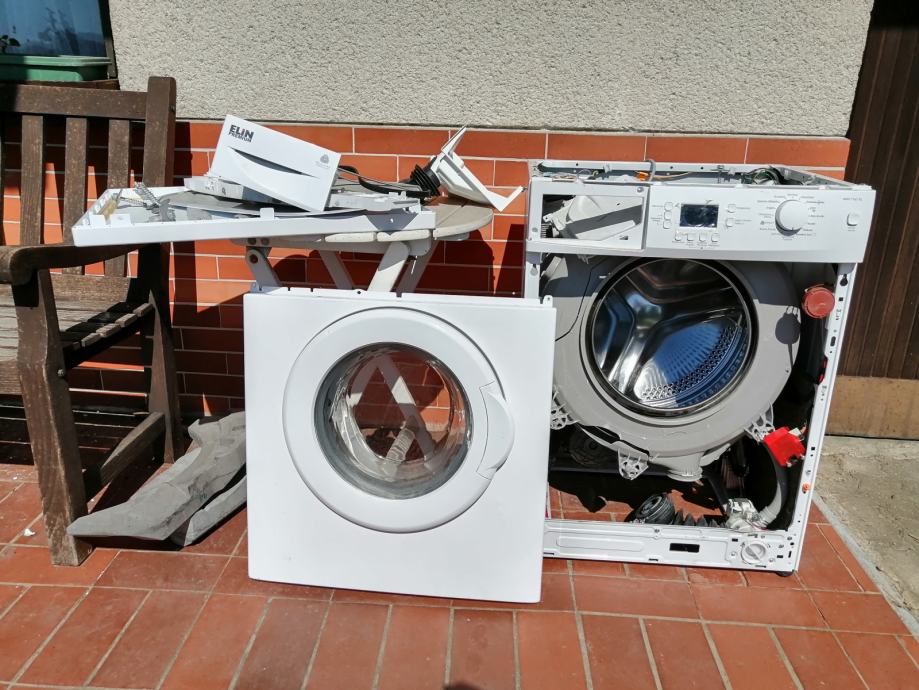 So pa drugi deli brezhibni (motor, črpalka, programator, jermen, boben, ohišje,...)
