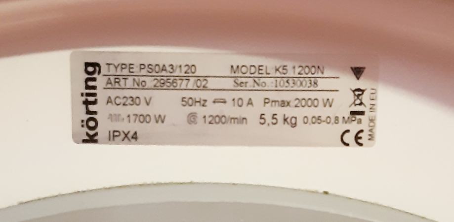 Körting K5.1200N pralni stroj odlikuje 1200 obratov na minuto, zmogljivost pranja 5,5 kg in energijski razred A. Aparat ima kar 15 programov med najpomembnejše pa sodijo: