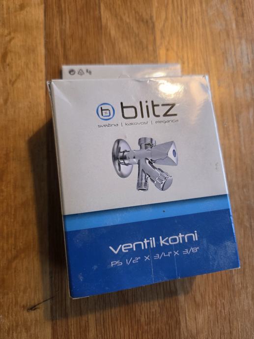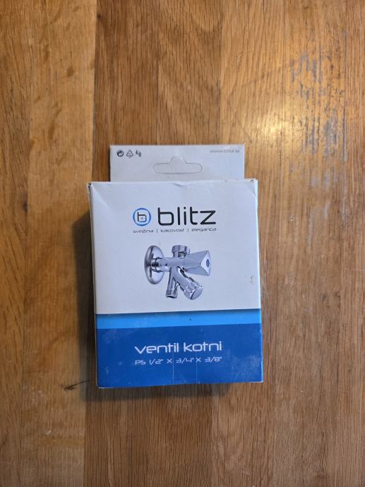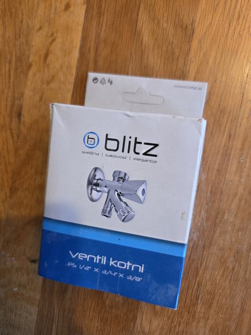 Kotni ventil. Material: medenina. Barva: krom. Priključek: 1/2"x3/4"x3/8".