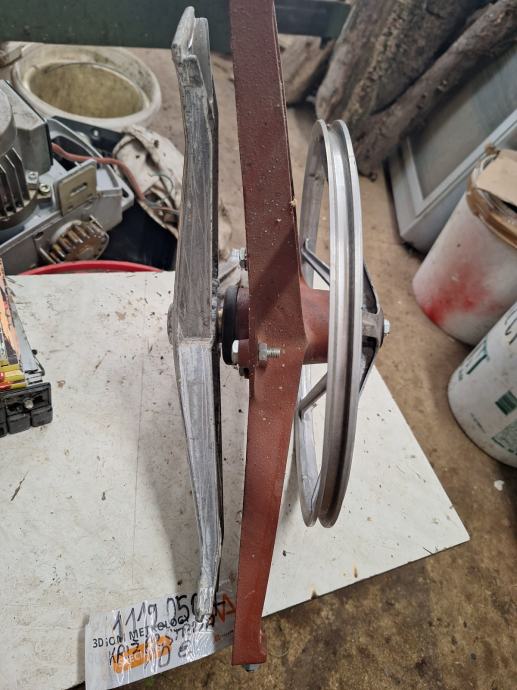 Križ bobna pralnega stroja, kot nov,uporabno za razne projekte z ležaji, osovino, vijaki, jermenico in nosilcem bobna. Vse očiščeno, brezhibno deluje. Moj namen je bil prvotno izdelati veternico, potem krožno žago a sem zaradi starosti moral vse opustiti. Mogoče gdo ima boljšo ali isto idejo.