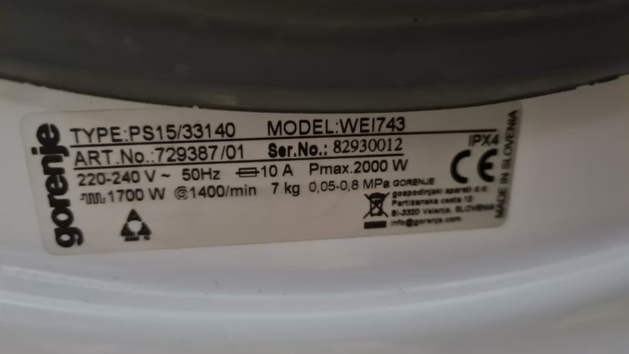 Pralni stroj Gorenje 7kg model WEI743 - inverter motor. Pralni stroj je imel v okvari boben.