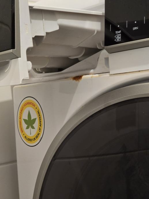 Pralni stroj ima madež rje (kot je vidno na sliki), vendar to ne vpliva na njegovo delovanje. Pralni stroj je v brezhibnem stanju in je bil redno vzdrževan.