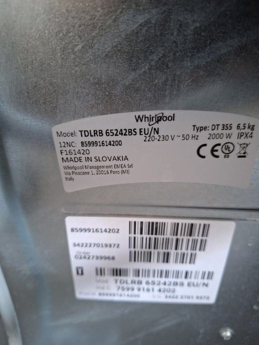 Prodam whirlpool pralni stroj z odpiranjem zgoraj