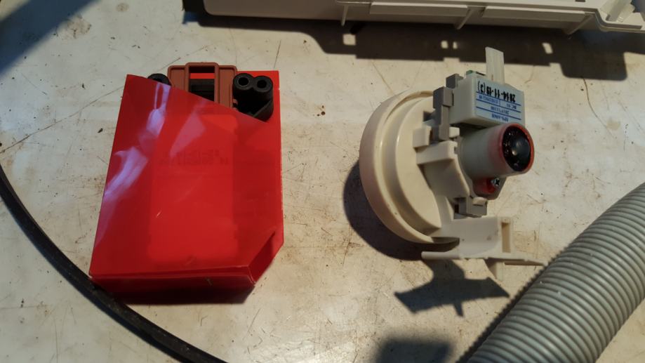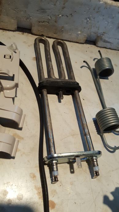 elektromotor 30 eur, črpalka s filtrom 15 eur, grelec 10 eur, elektronika 20 eur, guma glavna 15 eur, programator 15 eur, zapiralo vrat 10 eur, odtočna cev in izhod iz stroja 15 eur, tečaj vrat z vrati 15 eur, jermen 8 eur