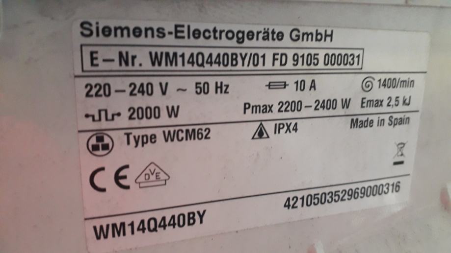 SIEMENS PRALNI STROJ -TIP WCM62 7 Kg.2200-2400 w