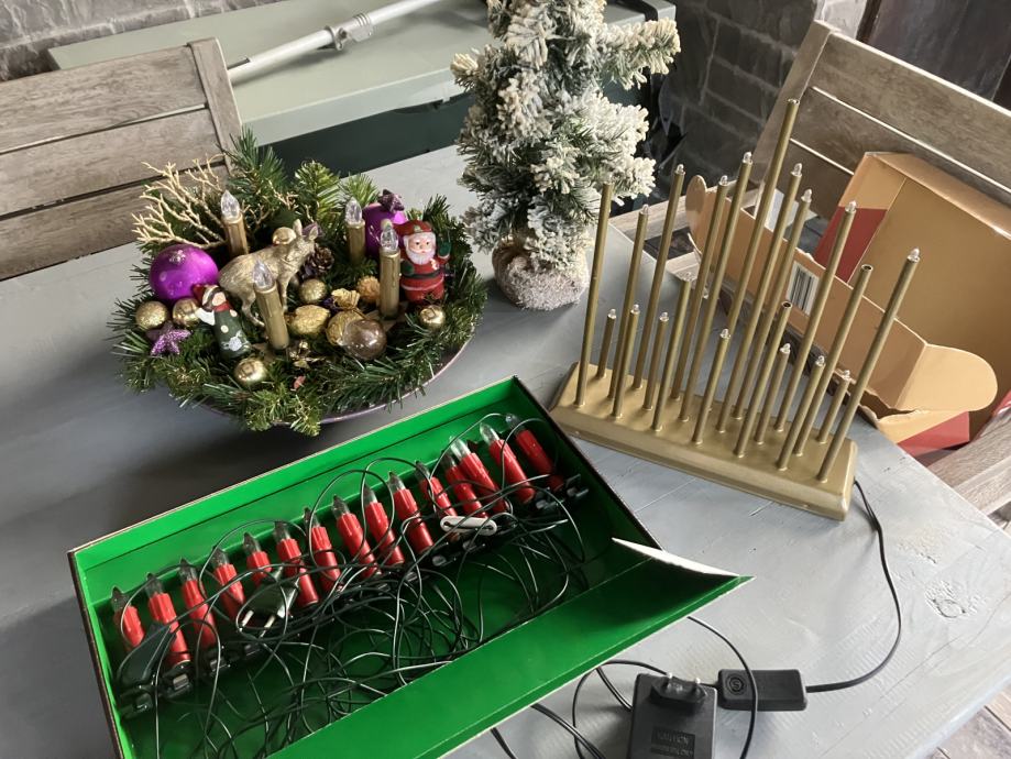 adventni venček z lučkami in dva kompleta lučk za okraševanje, novoletna jelka 40 cm visoka