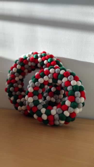 Prodam ročno izdelane venčke iz volnenih kroglic, ki bodo popestrili vaš dom med božično novoletni prazniki.