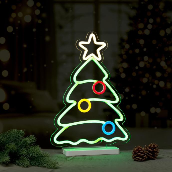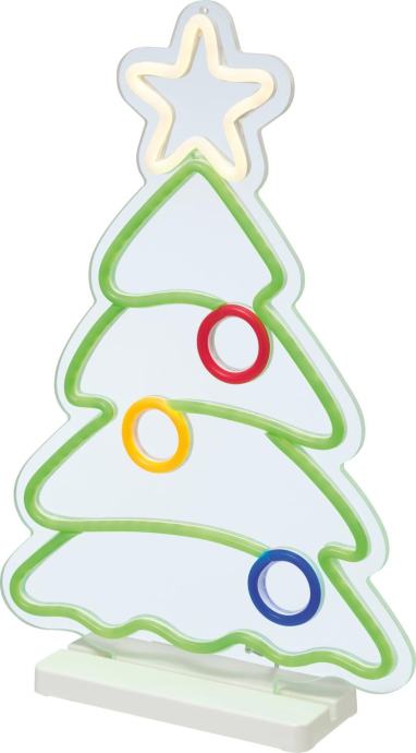 Ta sodobna svetlobna figura božičnega drevesa je prava paša za oči in z močno neonsko svetlobo ustvarja prav posebno vzdušje v vašem domu. Figura meri v širino 29,5 cm in v višino 42 cm, zato se idealno poda vsaki božični okrasitvi, najsi bo to na polici kamina, regalu ali na nočni omarici kot prava paša za oči. Svetlobna figura stabilno stoji na belem podstavku in sveti s skupno 238 fiksno vgrajenimi večbarvnimi LED-diodami. Kabel je dolg 1,5 metra in omogoča preprosto postavitev, zato ne potrebujete vtičnice v neposredni bližini.