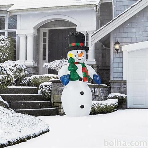 Letošnji Božič bo nekaj posebnega! Okrasite svojo hišo ali vrt s figuro za napihovanje v obliki sneženega moža na sankah, višine 2,4 metra. Figura se samostojno napihuje, preko samostojnega sestava za napihovanje. Sneženi mož s klobukom, šalom, nosom iz korenčka in božično drevo so glavni karakteristični simboli božičnih praznikov. Notranja LED svetloba osvetljuje figuro tudi po noči. Figura je zaščitena pred vremenskimi razmerami po IP44 standardu, torej je odporna tako na dež kot sneg. Dno figure je napolnjeno s peskom, za večjo stabilnost pa ima 4 kovinske igle z dolžino 15 cm in 4 vrvi dolge 1,8 metra za varno pričvrstitev. Ob koncu praznikov figuro pospravite v prikladno škatlo do naslednje uporabe.Več podatkov si oglejte na tej povezavi...