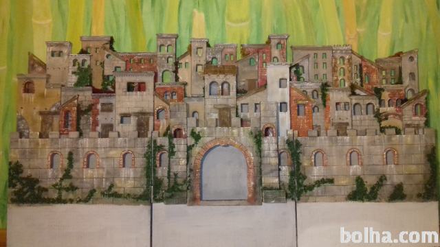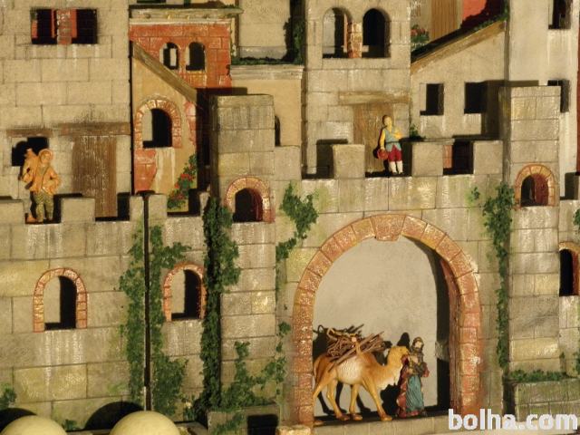 Doma narejeno ozadje za jaslice, dolžine 180cm višina pa 30cm podnožje + cca 70 cm v višino, globina pa je cca 18cm.