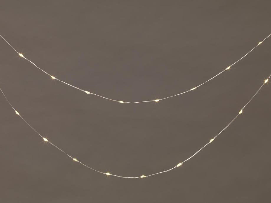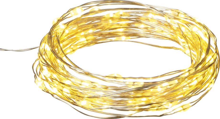 Elegantna svetlobna žična LED-veriga ustvarja praznično vzdušje v vašem domu. S 320 LED-diodami poskrbi za atmosfersko osvetlitev ozadja v božičnem času ali na zabavah. Primerna je za notranje in zunanje prostore in z njo lahko okrasite dnevno sobo, vrt ali balkon. Prozorno obložena srebrna žica nudi dodatne dekorativne učinke. Skupna dolžina svetlobne verige je 34,9 m, od tega je 3 m dolg napajalni kabel.Energetsko varčna in okolju prijazna tehnologijaUporabljena tehnologija sijalk zagotavlja energijsko varčne in trajne lastnosti. Okolju prijazno tehnologijo odlikujeta tudi visoka svetilnost in nizka toplotna moč. Fiksno nameščene žične LED-diode svetijo toplo belo. Ta barva svetlobe se na splošno dojema kot prijetna, saj spominja na prave sveče.