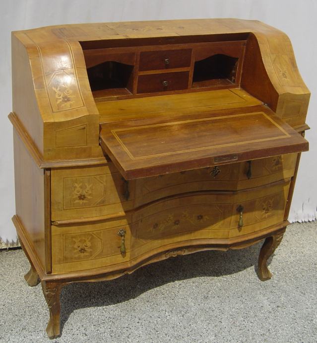 BAROČNI SEKRETER PREDALNIK OREH, STARINSKI STIL PISALNIK INTARZIJE ROŽ