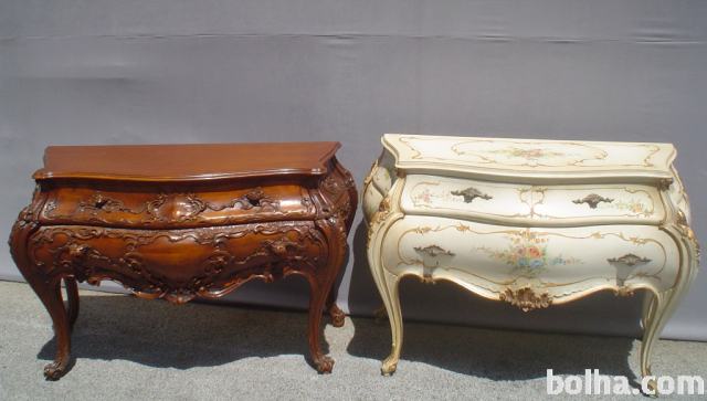 V RAZSTAVNEM SALONU V ŠKOFJI LOKI JE NA RAZPOLAGO VEČ RAZLIČNIH STARINSKIH PREDALNIKOV, OMARIC IN KOMOD V BAROČNEM STILU. Vljudno vabljeni na ogled: 041/568-490.